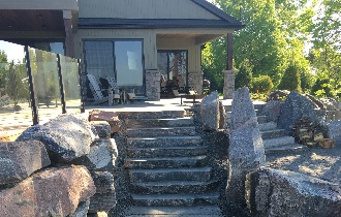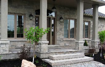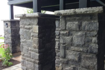 Custom cut to your specifications. Limestone or Granite available. Rocked or sawn front & sides. Flamed or Sandblasted Top.