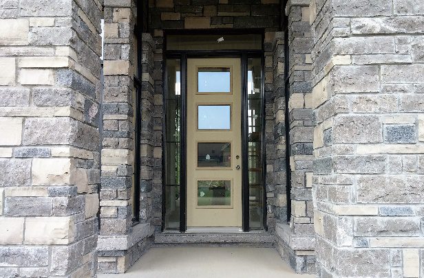 awn or random coursing stone veneer. Beige/tan face colour. 4” bed. Sizes are mixed lengths of 8” to 24”.