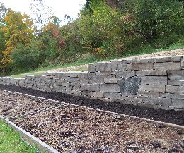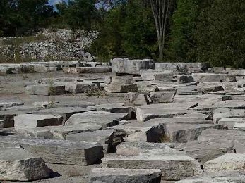 Orillia Limestone with lines on the face. Sizes range from 4” to 12” high. Large bulk pieces available or smaller skidded material available.