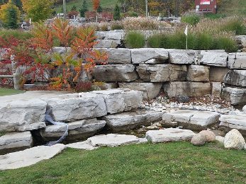 Orillia Limestone with distinct lines & natural wavy top. Sizes ranges from 15” to 28” high with various lengths and depths.